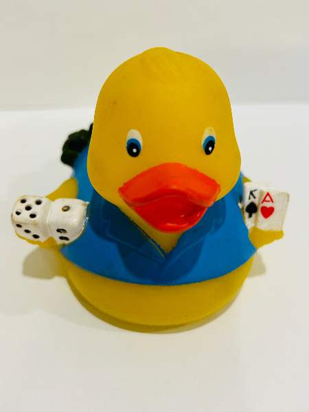 Ready to win some money, this rubber ducky is ready with its dice and deck!! Let the Rubber Casino Duck bring you some luck in all your games.