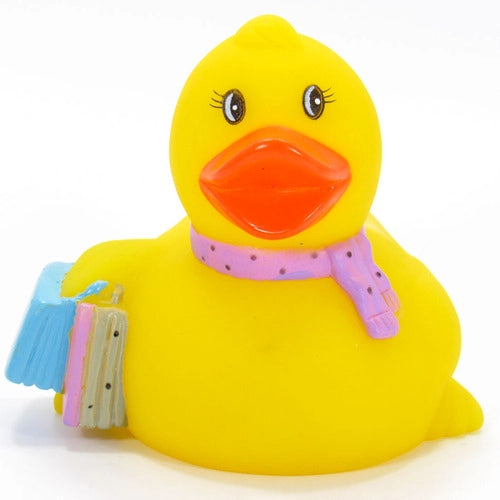 You'll be delighted to find out that Shopping Rubber Duck comes with multiple bags for all your shopping needs! It measures approximately 3 3/8" W x 3 1/4"H x 3 1/8"L, so get ready to shop till you drop (literally, the duck can't carry much more).