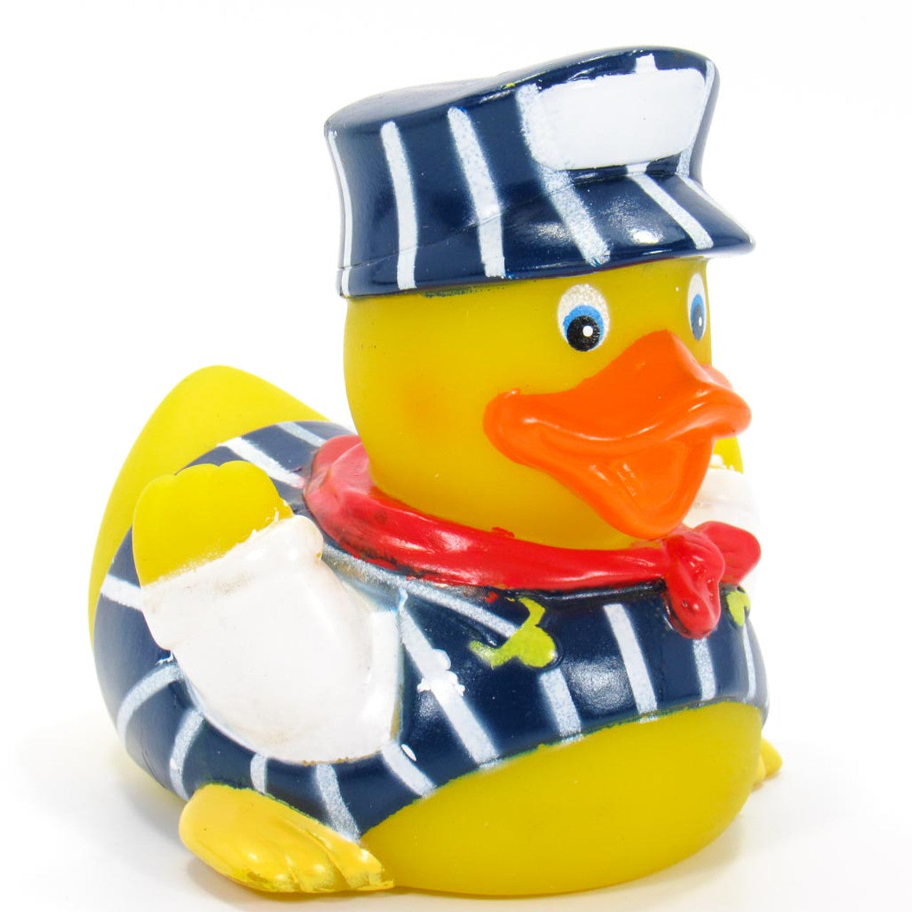 Get ready for a silly ride with Train Conductor Rubber Duck! This ducky has all the essentials - a conductors hat and overalls - to keep things running smoothly. Measuring in at approximately 3 3/8" W x 3 1/4"H x 3 1/8"L, this little duck is ready to take on the rails.