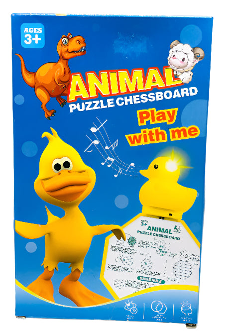 Support your child's development in creativity, visual perception, and logical reasoning with the Animal Puzzle Chessboard, suitable for ages 3 and above. Constructed from durable plastic, this educational toy includes a light-up duck that emits random sounds, enhancing engagement and interactive learning during play.