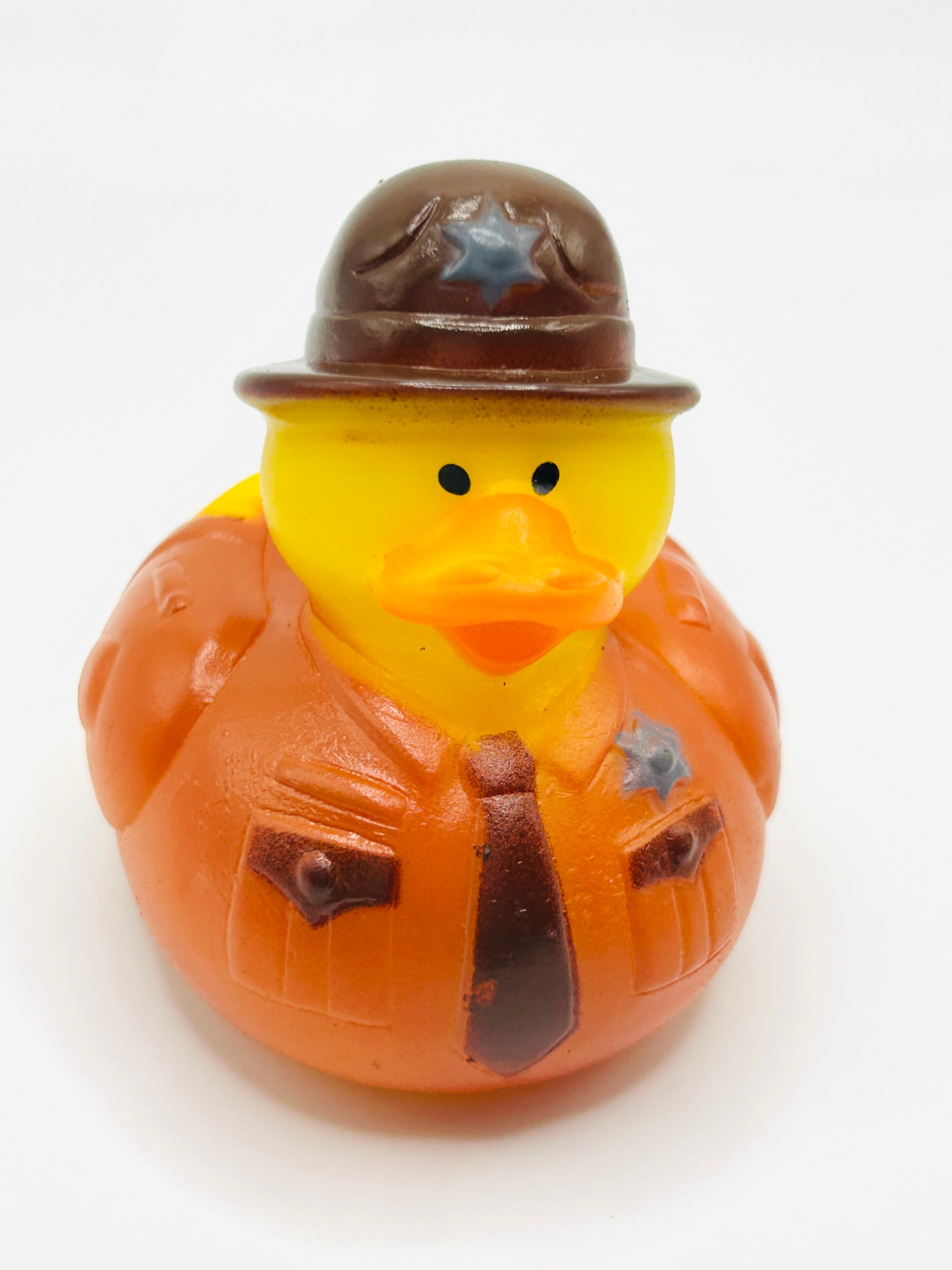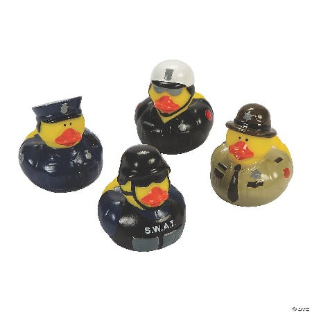 These heat-resistant Law Enforcement Rubber Duckies are ideal for any investigative mission. Constructed of vinyl, they measure 2 1/4" and unfortunately do not float upright. An exclusive offering from FX.