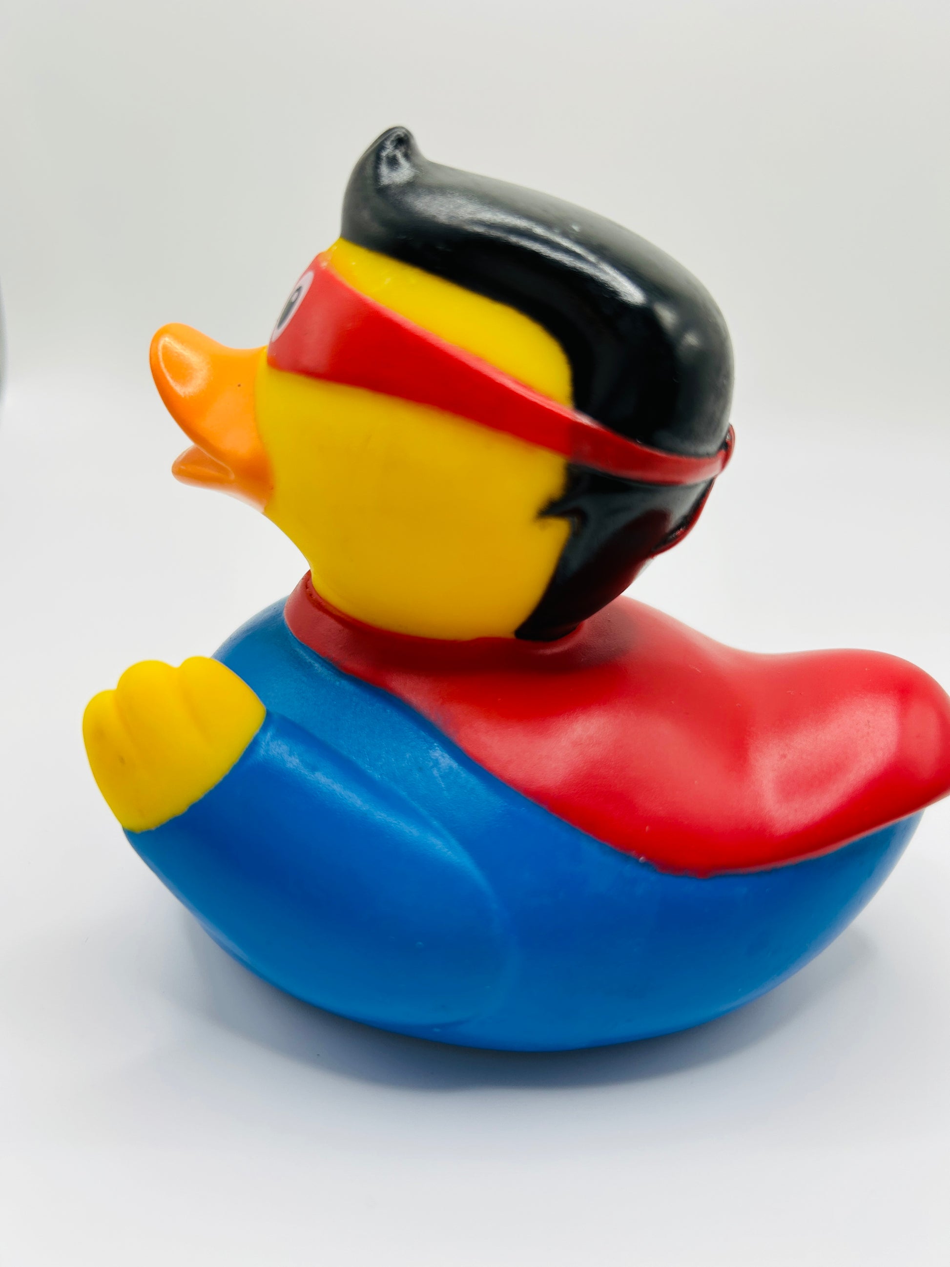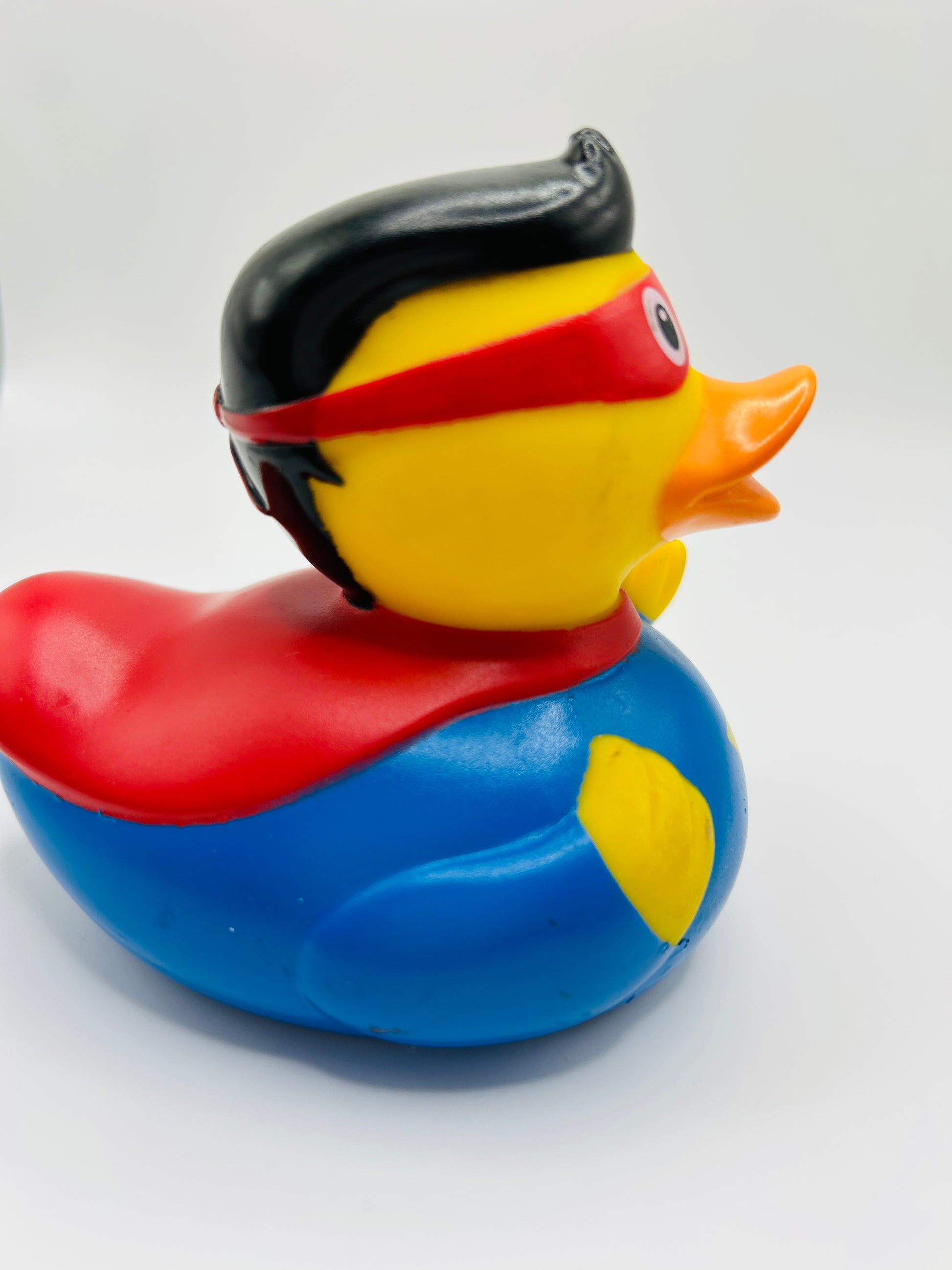 Superhero Rubber Duck. Buy the lifesaver duck. This guardian duck wears a blue uniform with red cape and mask. Give this superhero to someone who’s always there for you.