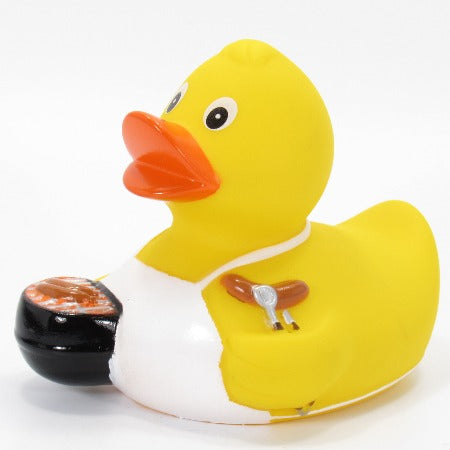 Get ready to spice up your backyard BBQ with the daring BBQ Rubber Duck! This classic yellow duck is equipped with a cooking apron, grill, and all the fixings for some mouth-watering hot dogs. Measuring in at a bold 3 3/8" W x 3 1/4"H x 3 1/8"L, this fearless duck is ready to take on any culinary challenge. Are you ready to join in on the adventure?