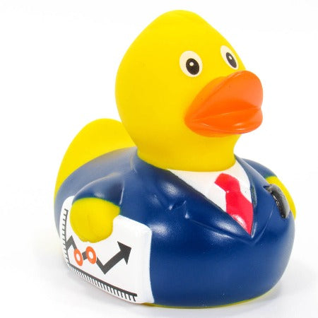 Experience the daring world of finance with Finance Business. Our Business Rubber Duck is dressed for success, surrounded by financial charts. Measuring 3 3/8" W x 3 1/4"H x 3 1/8"L, this miniature motivator is ready to take on any challenge and inspire you to reach new heights in your financial endeavors!