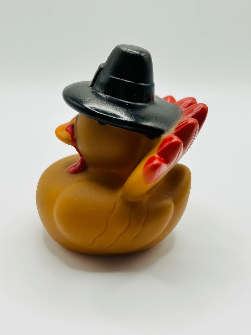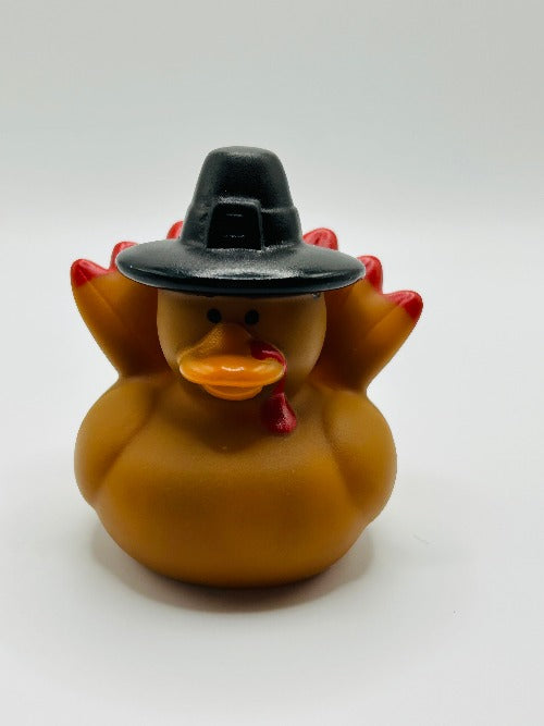 Delight family & friends with these fabulous rubber duck Thanksgiving turkeys! A hit with kids & adults alike, each little bird is dressed for the occasion in a black pilgrim hat. Eagerly await your guests to add these to their collections! Vinyl. 2" - Note, these duckies don't float upright.